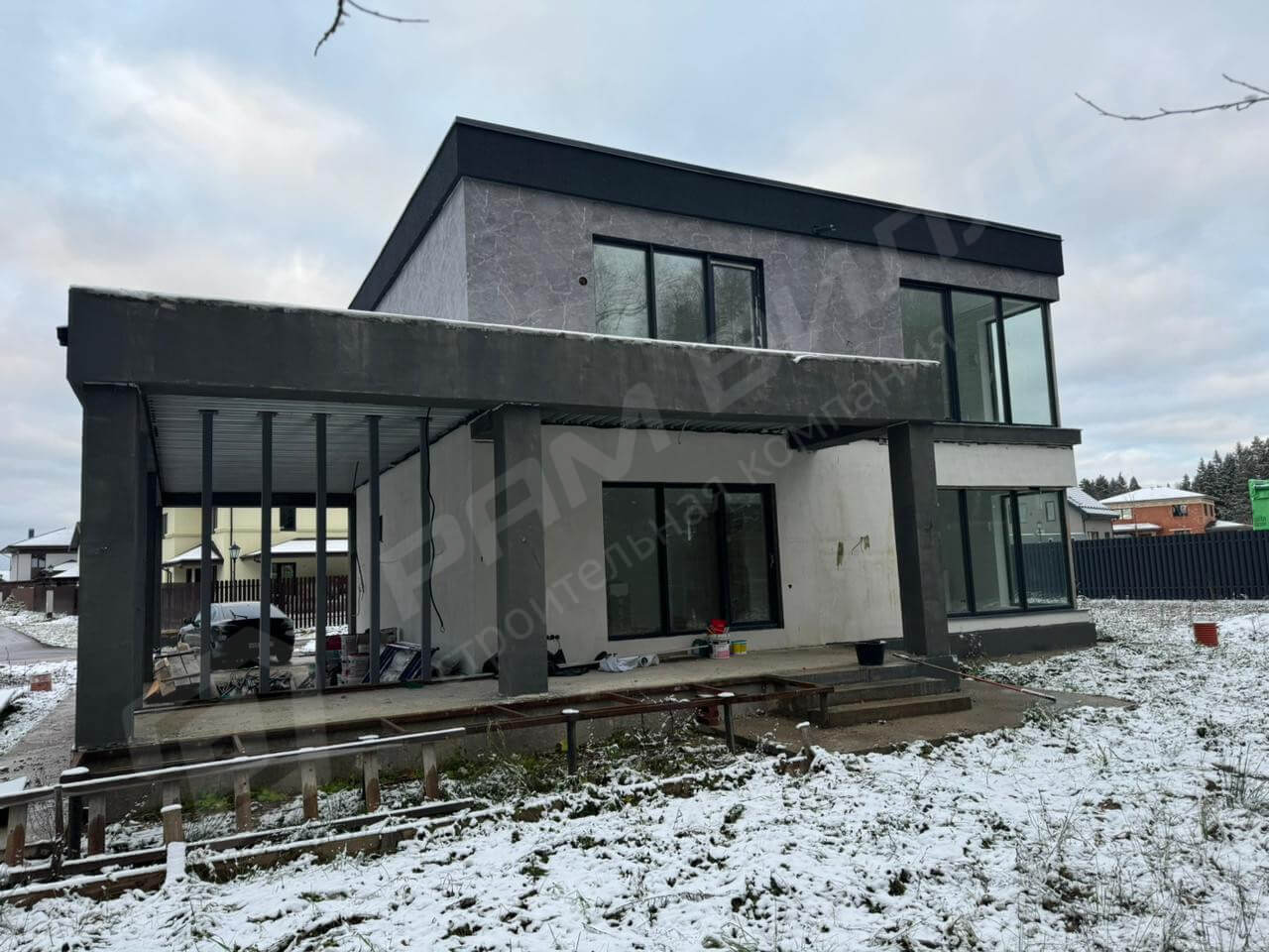 Выполняется строительство двухэтажного дома на 292 м2, строится по индивидуальному проекту. Фундамент по свайно-ростверковой технологии, стены из газобетонных блоков.