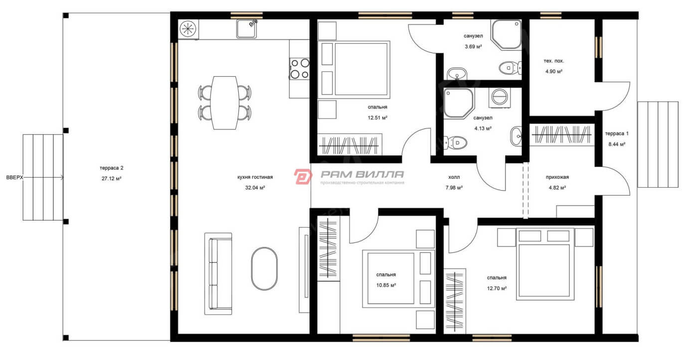 Площадь 1 этажа 144.69 м2