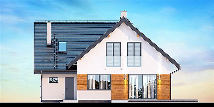 План дома "Осло" рассчитан на участок средней ширины. Дом имеет типичные размеры 10 х 12, поэтому его постройка обойдется не дорого. Проект относится к категории домов с выступом, направленным перпендикулярно дороге, что часто указывается в плане пространственного развития. Проект был создан для земельных участков, позволяющих отдельно стоящие здания. Проект может быть расположен на границе участка, что позволяет строить двухквартирные дома. Автор проекта предсказал наличие единственного гаража в линии строительства. Это также отличное предложение для людей, которые ищут дом с двускатной крышей, что снижает расходы. Проект "Осло" представляет собой одноэтажный дом с мансардой, благодаря которому мы можем наслаждаться большой площадью, даже на относительно небольшом участке. Сердцем дома является просторная дневная зона, в которой приятно проводить время вместе с близкими. Кроме того, просторная кладовая - полезная комната. Дневная зона также создает просторную гостиную со столовой, благодаря которой члены домохозяйства могут объединиться в одном месте. Камин, расположенный в гостиной, не только выглядит великолепно, но и обеспечивает приятное тепло в прохладные дни. Полностью функциональная ванная комната предусмотрена как на первом этаже, так и на чердаке, что является отличным решением для большего количества членов семьи. Спальная зона состоит из четырех комнат, Это отличный вариант для семьи из 4-6 человек. Пространство также может быть использовано в качестве комнаты для гостей или учебы. В доме также было место для практических хозяйственных помещений. Терраса является идеальным местом для организации семейных торжеств и минут отдыха.