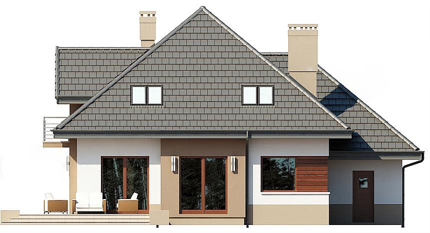 План дома "Любляна" - интересное предложение для людей со средним участком, ведь его размеры 14 х 12. В доме есть типичный блок, что значительно облегчает последующую внутреннюю обустройство. Заслуживает внимания декоративный эркер, который придает структуре дополнительный шарм. Проект был создан для земельных участков, позволяющих отдельно стоящие здания. Конструкция включает в себя двойной гараж в здании. Это также интересное предложение для людей, которые ищут дом с тентовой крышей, который относится к наиболее прочным кровельным конструкциям. Проект "Любляна" представляет собой одноэтажный дом с мансардой, что означает что дневная и ночная зоны четко отделены друг от друга. Сторонникам просторных пространств наверняка понравится дневная часть, предусмотренная в проекте. Проект предусматривает закрытие кухни для зоны отдыха, благодаря чему из гостиной не слышны звуки. Сочетание столовой и гостиной - идеальное решение для людей, которые любят организовывать вечеринки. В гостиной есть атмосферный камин, который дарит приятное тепло и создает в интерьере приятную атмосферу. Дизайн включает в себя одну ванную комнату на первом этаже и две на чердаке. Четыре комфортабельных номера удовлетворят потребности семьи из 4-6 человек. Пространство также может быть использовано в качестве комнаты для гостей или учебы. Для людей, которые ценят хорошую организацию, важной комнатой является гардероб, представленный в дизайне. Семейные посиделки в солнечные дни с террасой возле дома. Технология кирпича, рекомендованная архитектором, обеспечивает прочность и прочность конструкции. Его внешний вид относится к современному стилю и будет идеально соответствовать тенденциям вновь возникающих поместий.